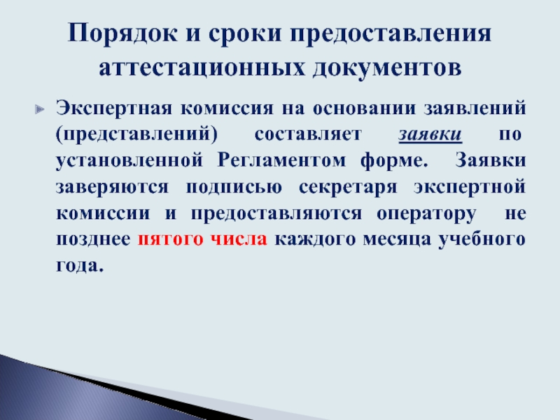 Порядок и сроки предоставления аттестационных документов
