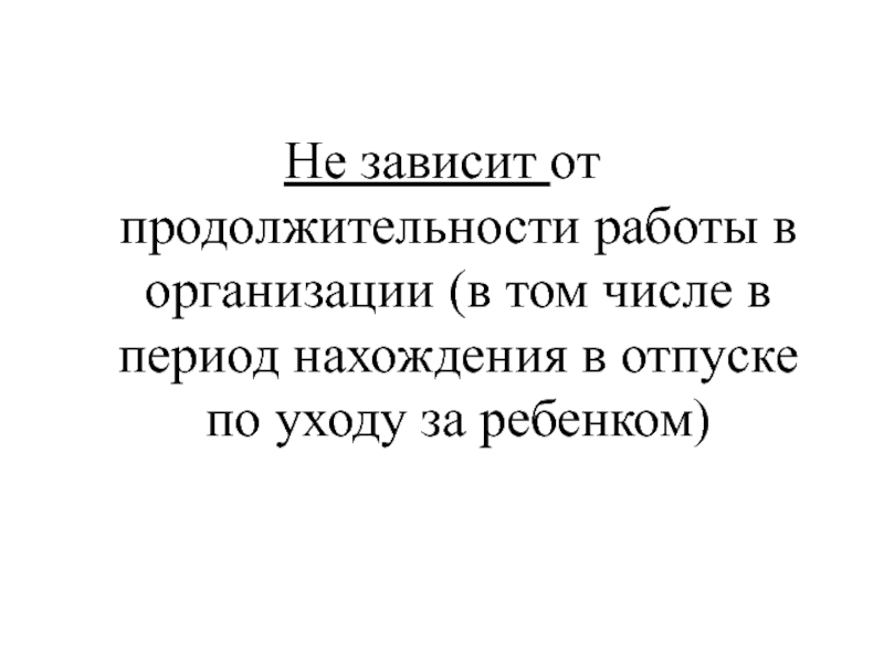 Слайд 14Не зависит от продолжительности работы в организации (в том числе в