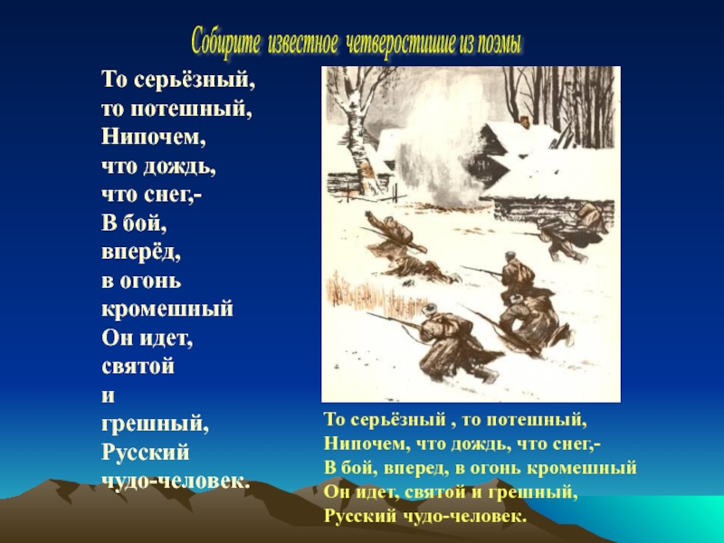 Собирите известное четверостишие из поэмы