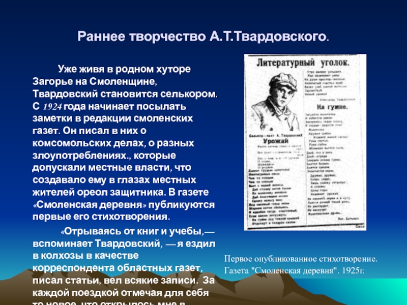 Первое опубликованное стихотворение. Газета "Смоленская деревня". 1925г.