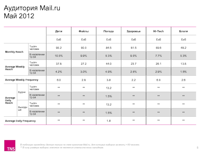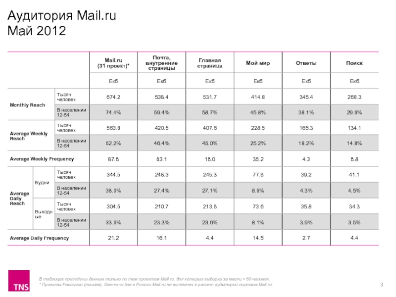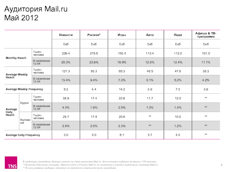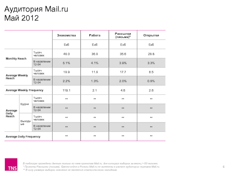 * Проекты Рассылки (письма), Games-online и Ролики Mail.ru не включены в расчет аудитории портала Mail.ru.