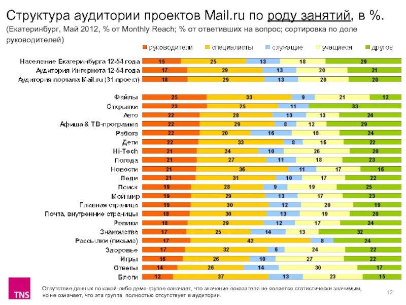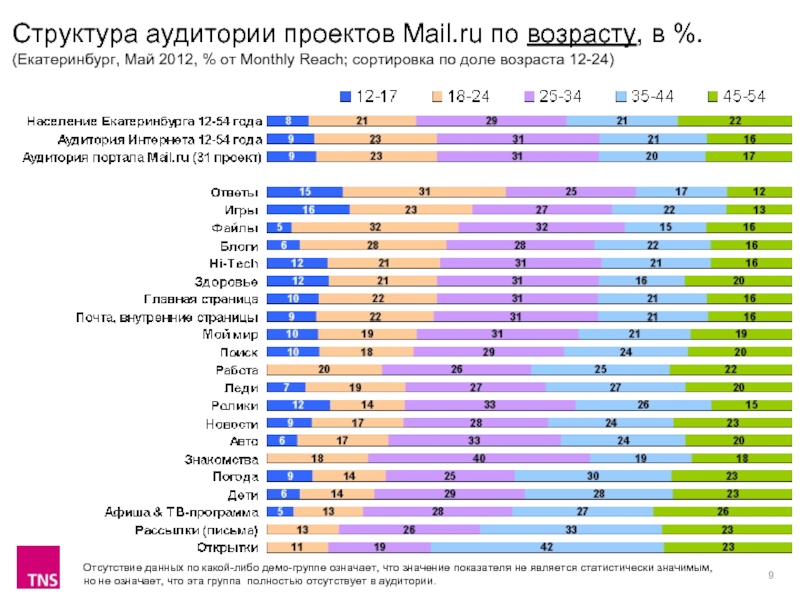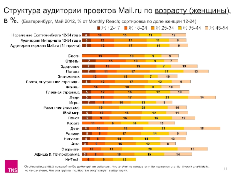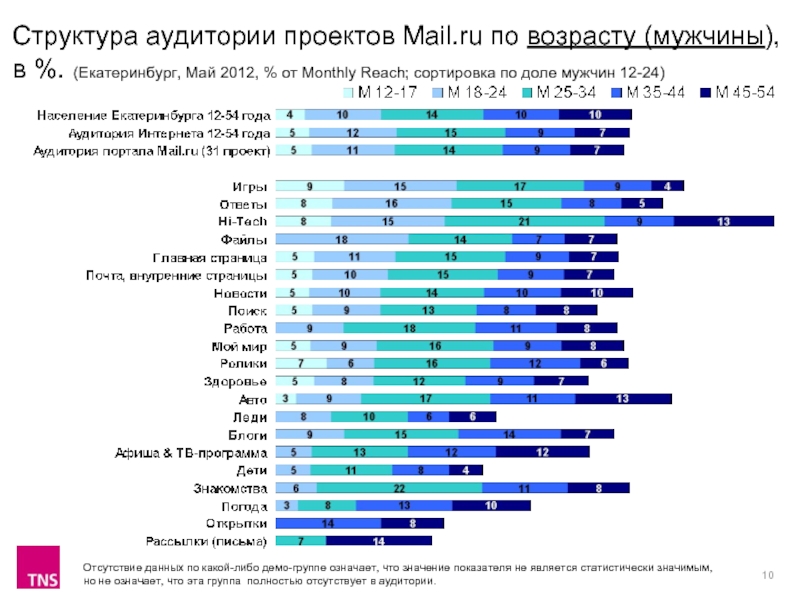 Отсутствие данных по какой-либо демо-группе означает, что значение показателя не является статистически значимым,