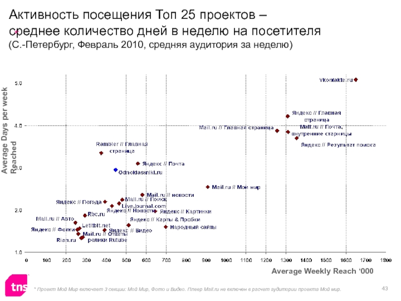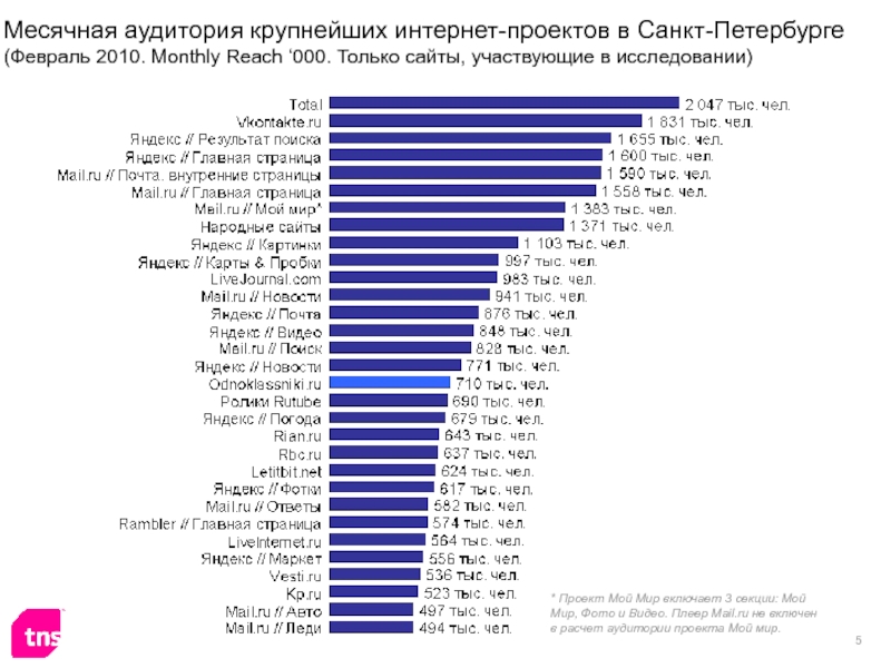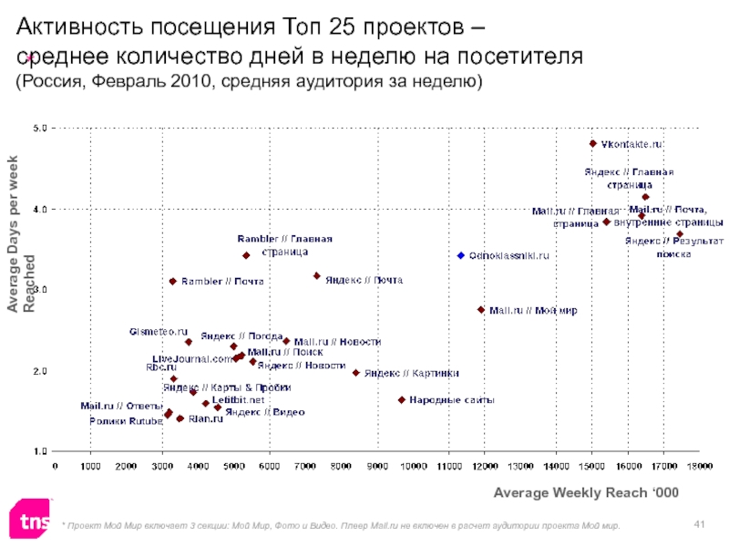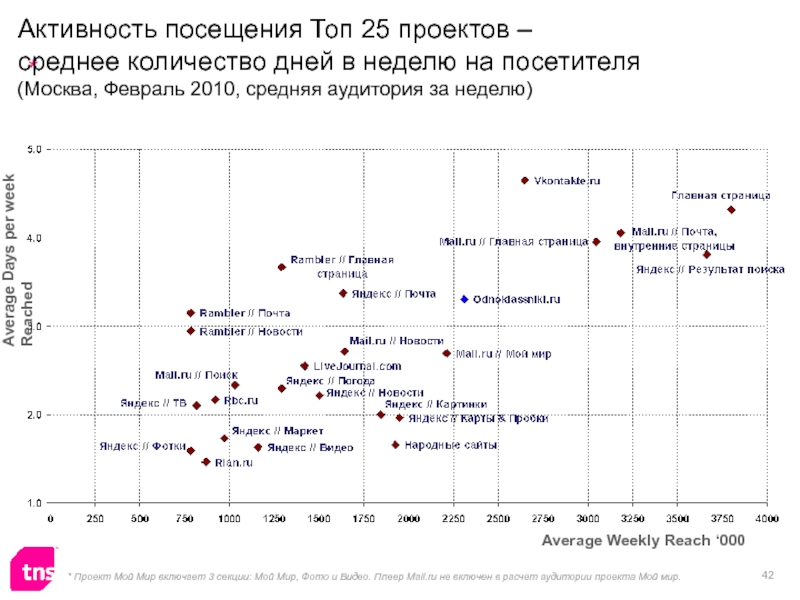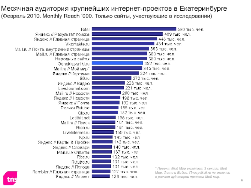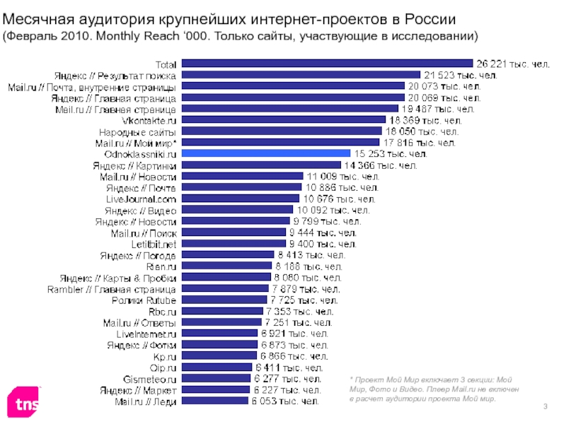 * Проект Мой Мир включает 3 секции: Мой Мир, Фото и Видео. Плеер Mail.ru не включен в расчет аудитории проекта Мой мир.