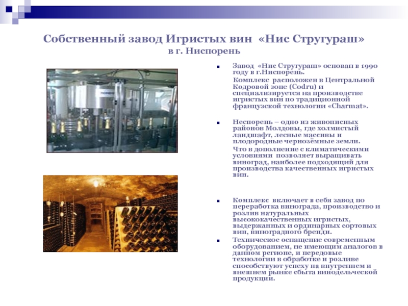 Слайд 9Собственный завод Игристых вин «Нис Стругураш»