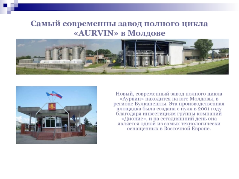 Слайд 5Самый современны завод полного цикла «AURVIN» в Молдове