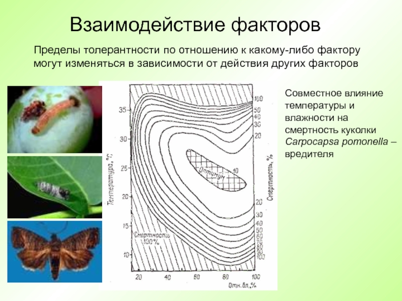 Совместное влияние температуры и влажности на смертность куколки Carpocapsa pomonella – вредителя