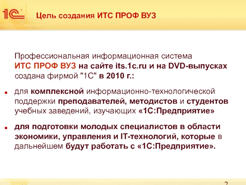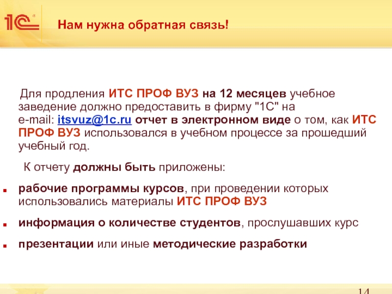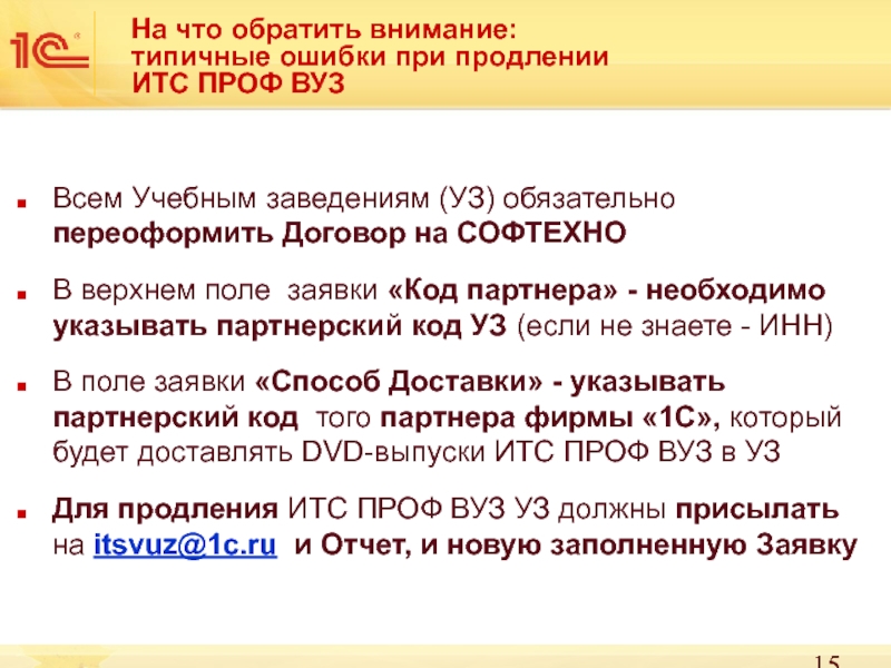 программы "1С" в учебном процессе, должны заключить договор ИТС ПРОФ ВУЗ