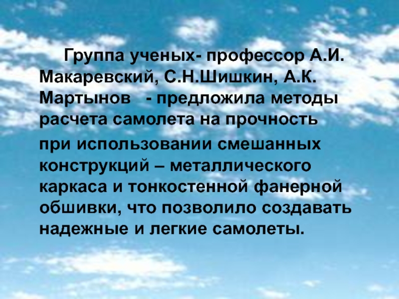 при использовании смешанных конструкций – металлического каркаса и тонкостенной фанерной обшивки, что позволило создавать надежные и легкие самолеты.