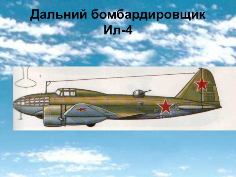 дальние бомбардировщики: ТБ – 3 (1930, 1934), ДВ – 3(1935), ДБ – 3 (1937), Ил-4 (1938),Пе-8 (1939), Ил-2 (1939),