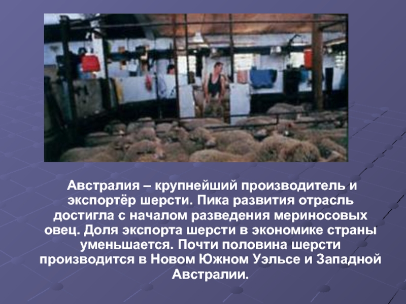 Слайд 16 Австралия – крупнейший производитель и экспортёр шерсти. Пика