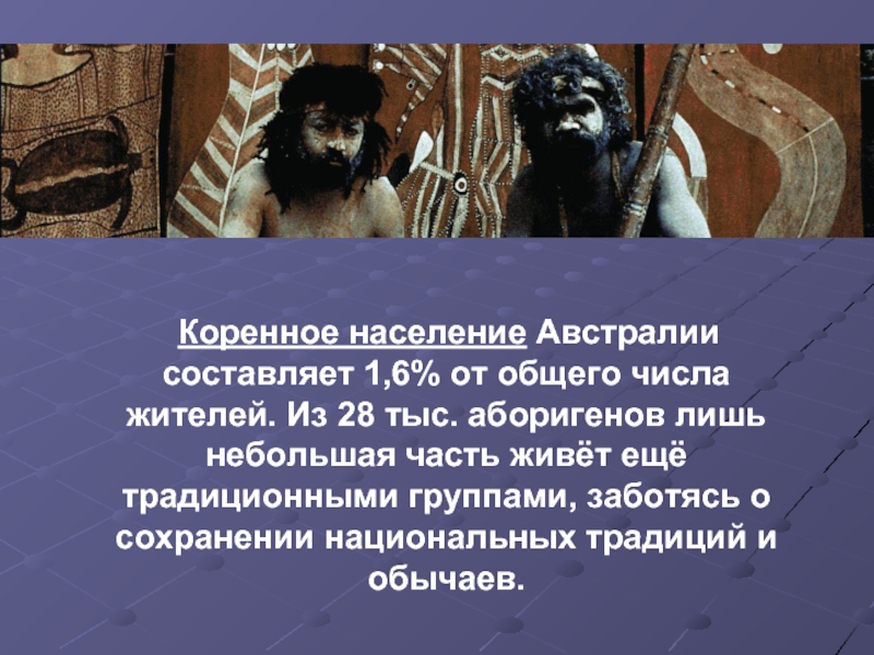 Слайд 13 Коренное население Австралии составляет 1,6% от общего числа жителей.