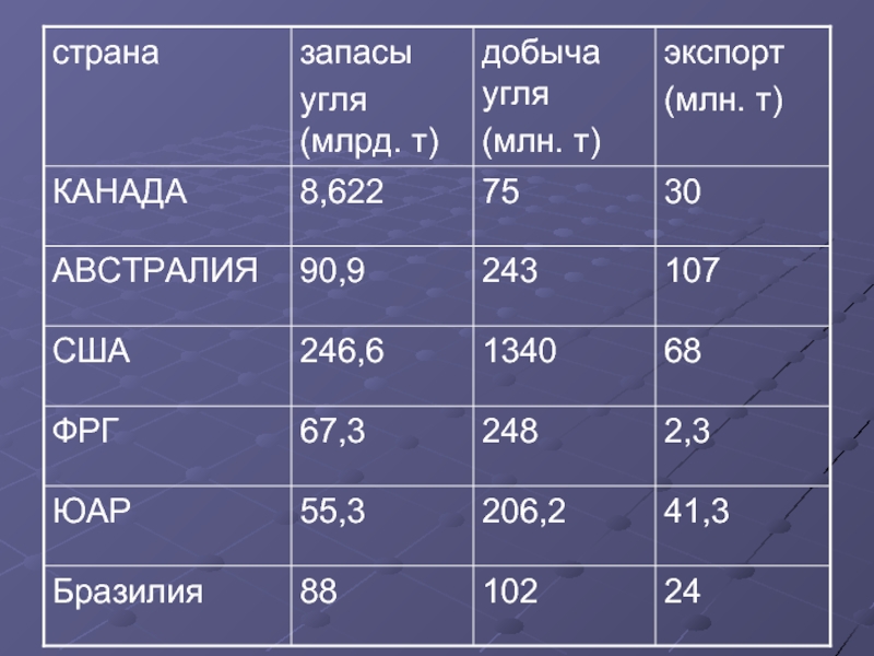 страны преобладает продукция горно – добывающей отрасли и сельского хозяйства.