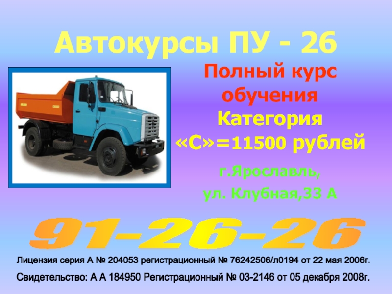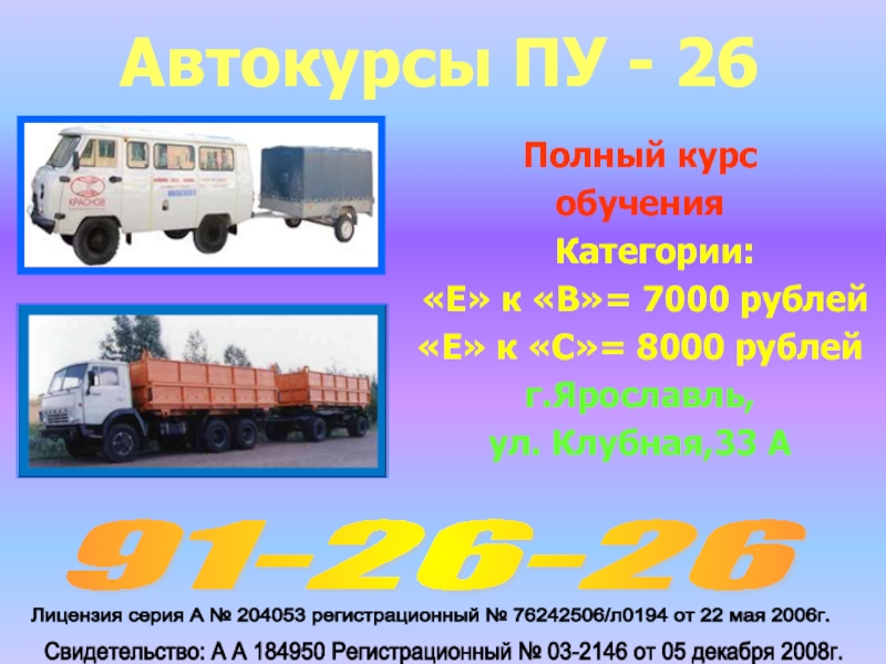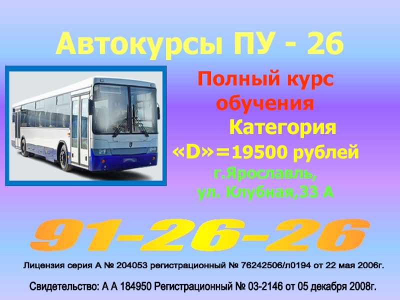 Лицензия серия А № 204053 регистрационный № 76242506/л0194 от 22 мая 2006г.
