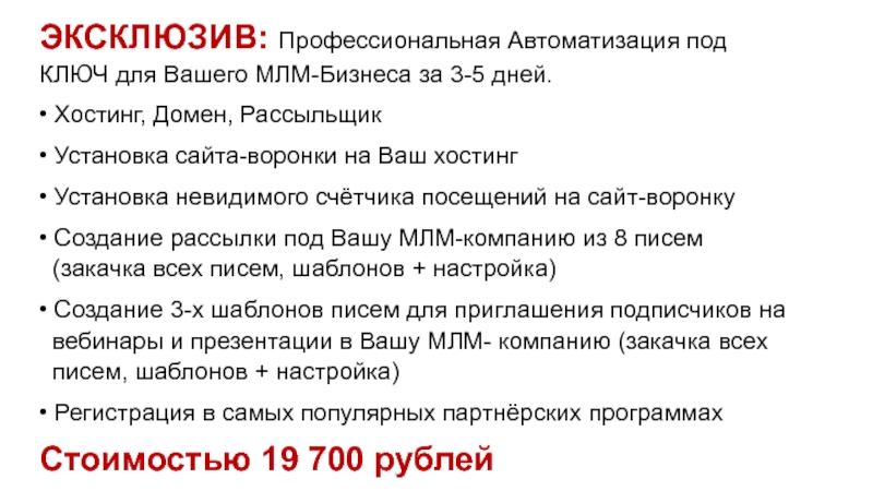 работы и автоматизации МЛМ бизнеса в Интернет»