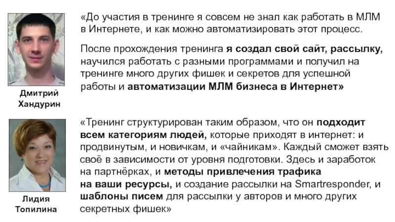Слайд 111«До участия в тренинге я совсем не знал как работать в