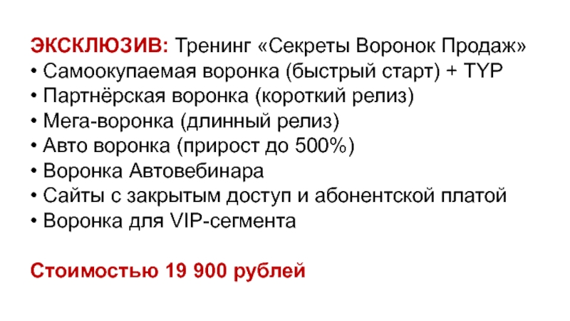 Слайд 121ЭКСКЛЮЗИВ: Тренинг «Секреты Воронок Продаж»