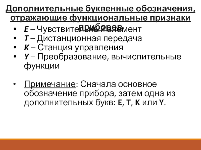 Примечание: Сначала основное обозначение прибора, затем одна из дополнительных букв: E, T, K или Y.