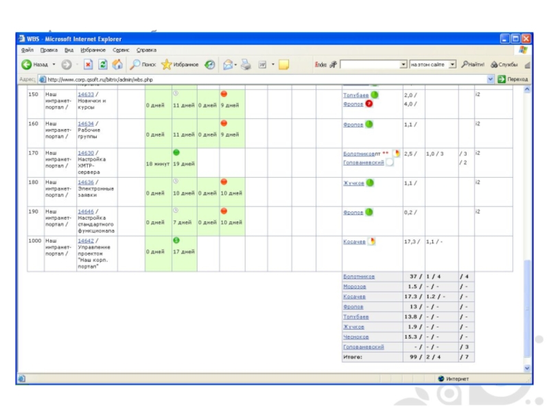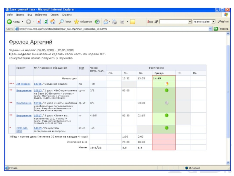 На основании реальных трудозатрат по прошлой неделе и project’а формируется