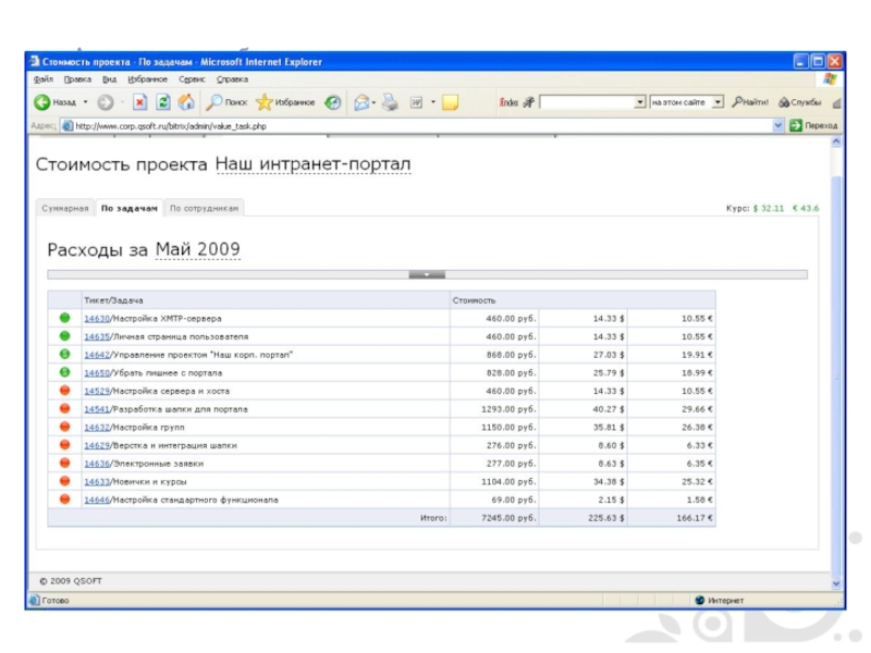 В полученных тасках сотрудники отмечают затраченное время;