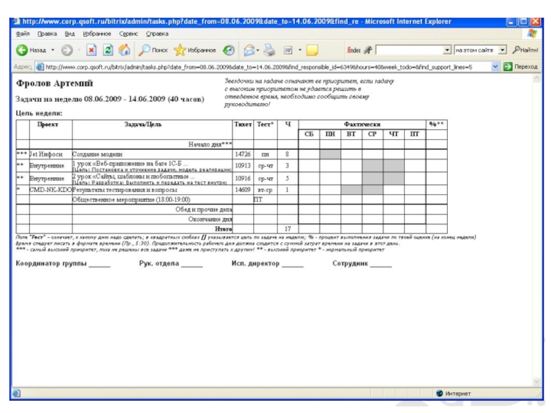 На основании приоритетов руководители отделов формируют таски (задание на неделю) сотрудников