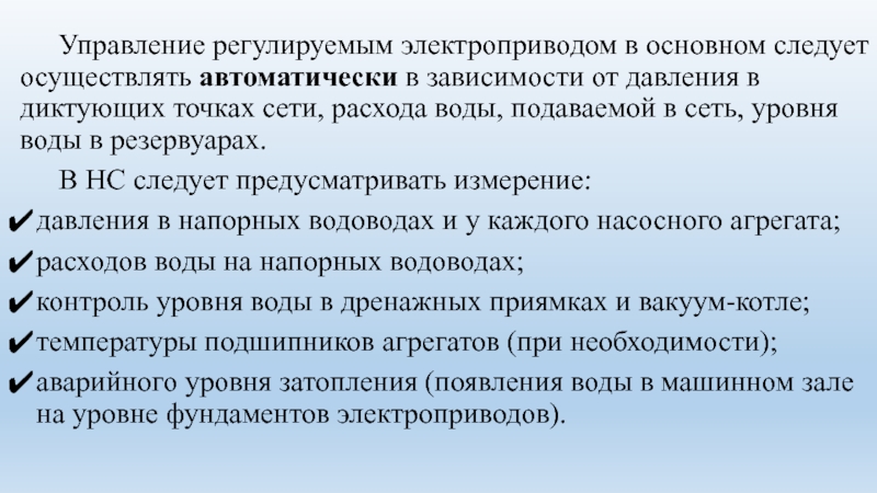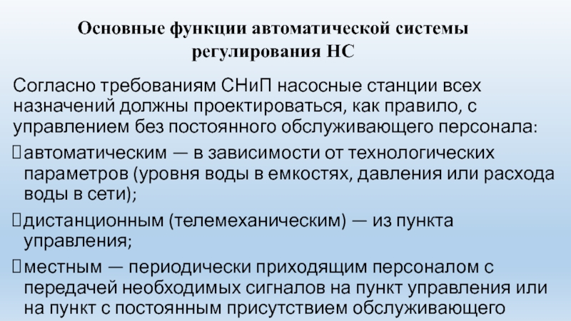 Слайд 24Согласно требованиям СНиП насосные станции всех назначений должны проектироваться, как правило,