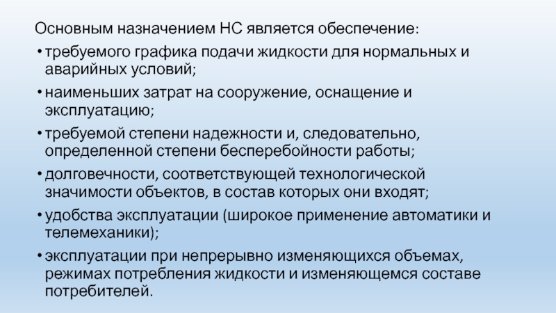 эксплуатации при непрерывно изменяющихся объемах, режимах потребления жидкости и изменяющемся составе потребителей.