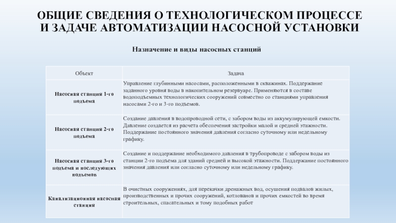 Слайд 11ОБЩИЕ СВЕДЕНИЯ О ТЕХНОЛОГИЧЕСКОМ ПРОЦЕССЕ И ЗАДАЧЕ АВТОМАТИЗАЦИИ НАСОСНОЙ УСТАНОВКИ