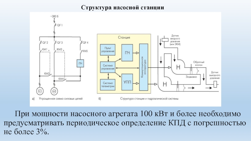 Слайд 26При мощности насосного агрегата 100 кВт и более необходимо предусматривать периодическое