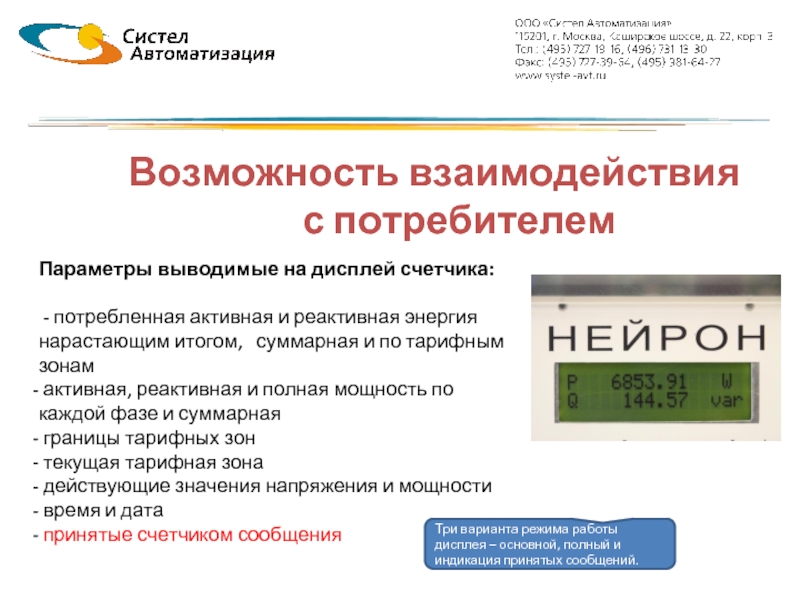 Три варианта режима работы дисплея – основной, полный и индикация принятых сообщений.