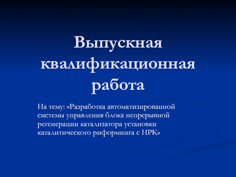 Автоматизированная система управления блока непрерывной регенерации катализатора, установка каталитического риформинга с НРК презентация