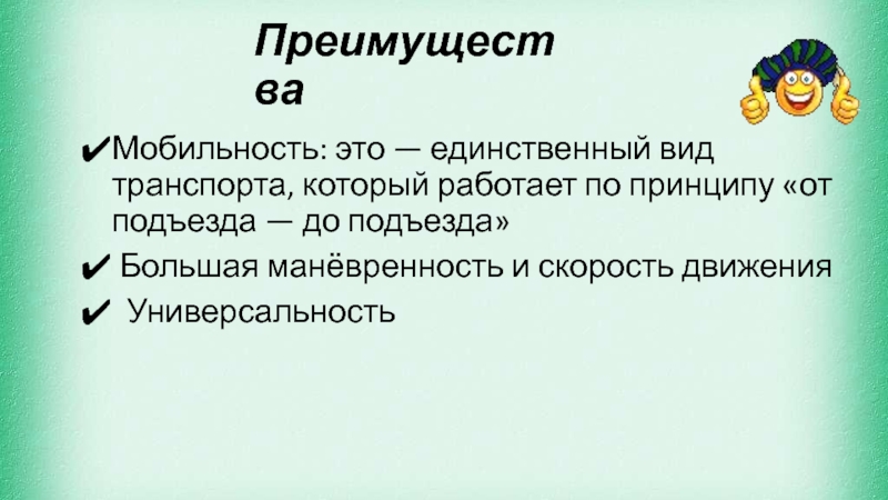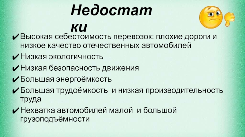 Грузовые автомобили перевозят практически все виды грузов, но даже на больших расстояниях (до 5 и более тыс. км) автопоезда (грузовик-тягач и прицеп или полуприцеп) успешно конкурируют с железной дорогой при перевозке ценных грузов, для которых критична скорость доставки, например, скоропортящихся продуктов.