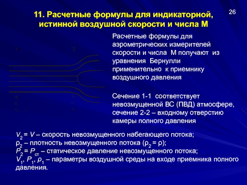 Сечение 1-1 соответствует невозмущенной ВС (ПВД) атмосфере, сечение 2-2 – входному отверстию камеры полного давления