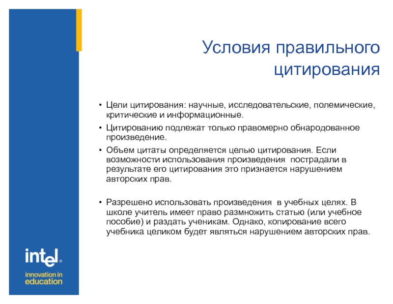 Слайд 19Условия правильного цитирования