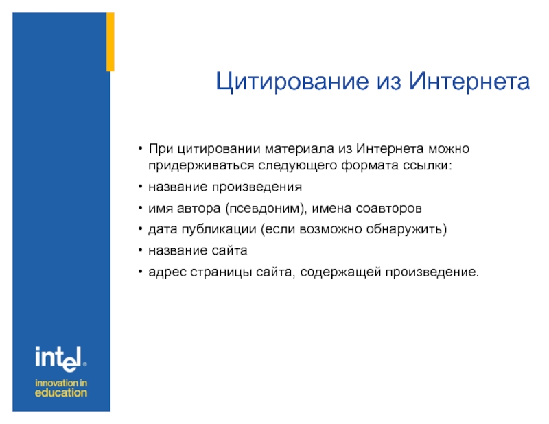 Слайд 22Цитирование из Интернета