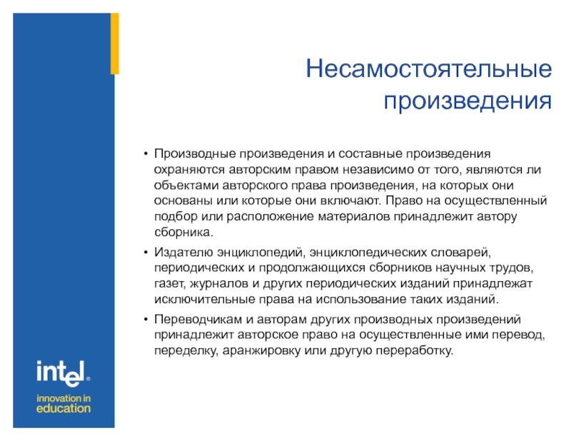 Производные произведения и составные произведения охраняются авторским правом независимо от