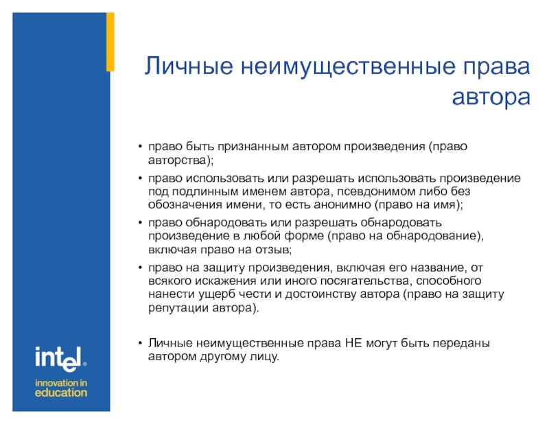 Слайд 7Личные неимущественные права автора