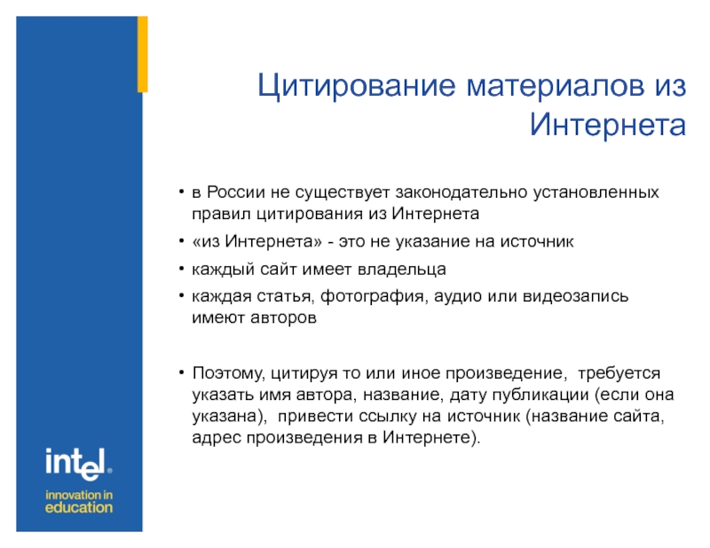 Слайд 21Цитирование материалов из Интернета