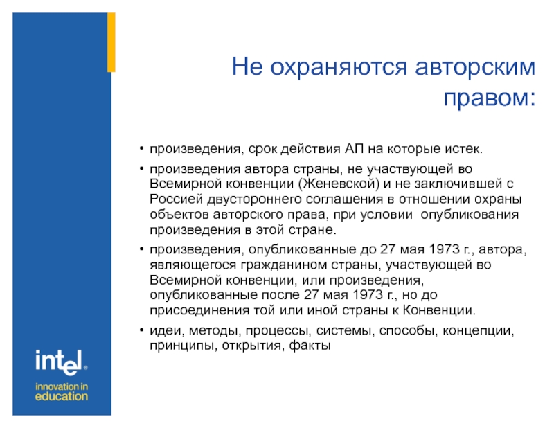 Слайд 13Не охраняются авторским правом: