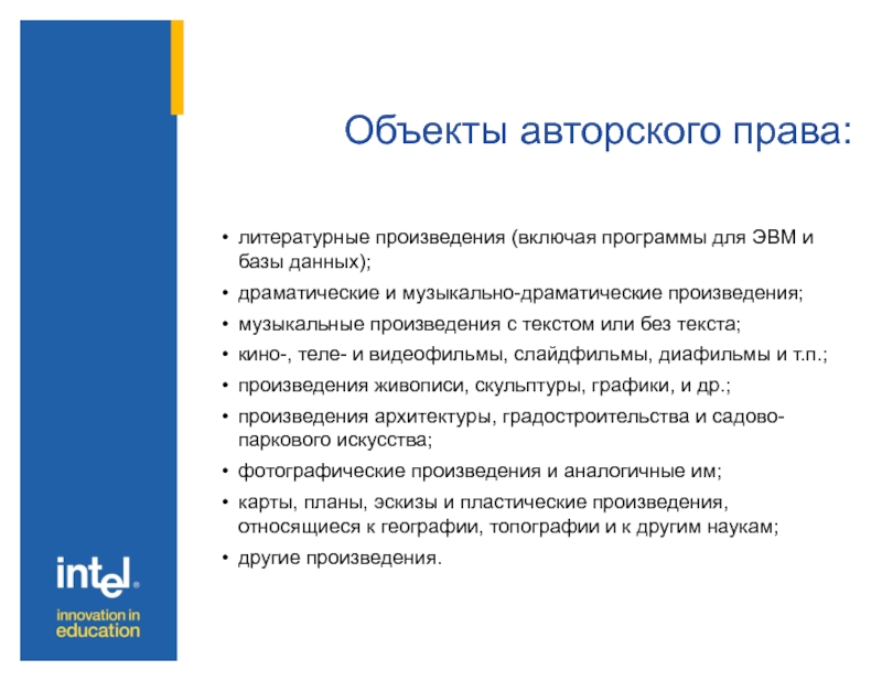 Слайд 4Объекты авторского права: