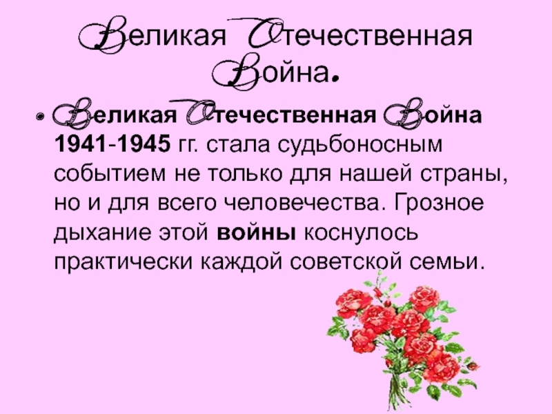только для нашей страны, но и для всего человечества. Грозное дыхание этой войны коснулось практически каждой советской семьи.