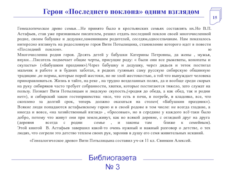 Со временем исследователи творчества В.П.Астафьева соберут весь материал об этом великом писателе 20 века. Мы вносим свой вклад.