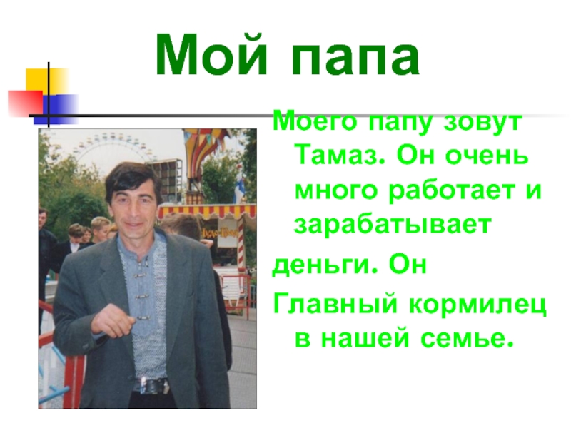 Моего папу зовут Тамаз. Он очень много работает и зарабатывает