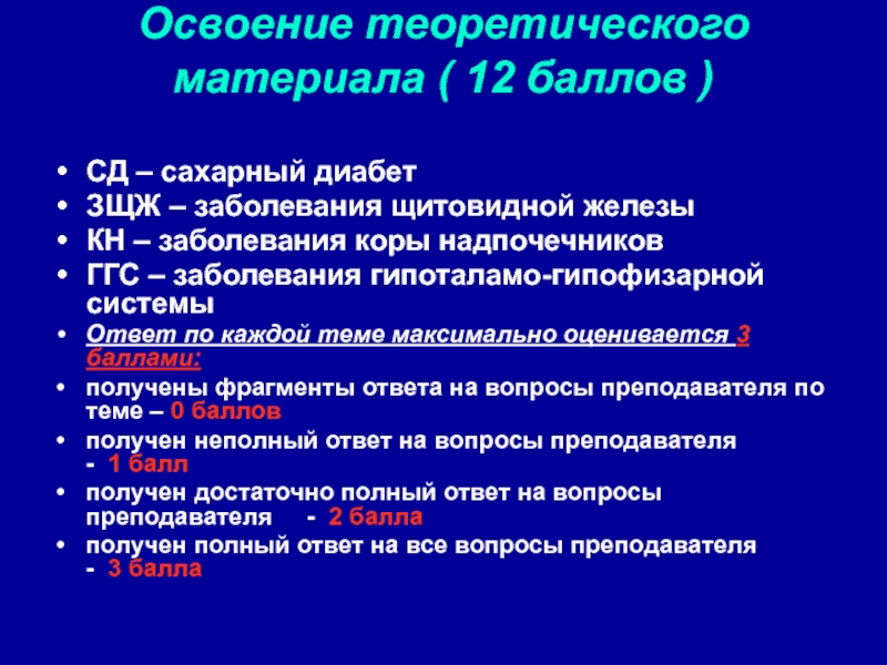 Оценка типа и степени тяжести сахарного диабета – 2 балла
