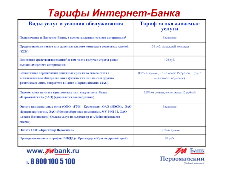 Слайд 6Тарифы Интернет-Банка