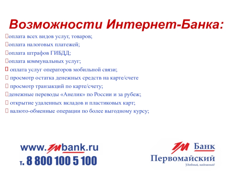 Банк Первомайский(ЗАО) презентация