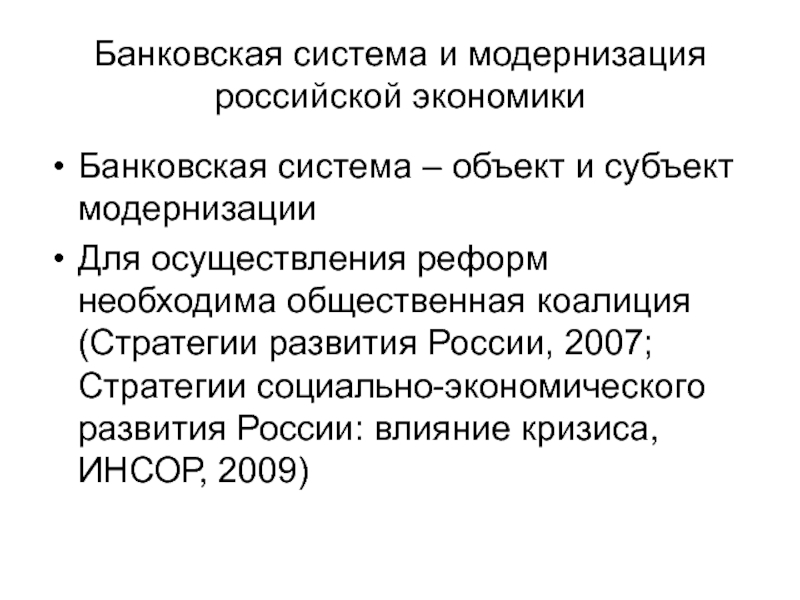 Слайд 1БАНКОВСКАЯ СИСТЕМА И МОДЕРНИЗАЦИЯ РОССИЙСКОЙ ЭКОНОМИКИ