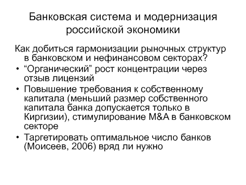 Таргетировать оптимальное число банков (Моисеев, 2006) вряд ли нужно