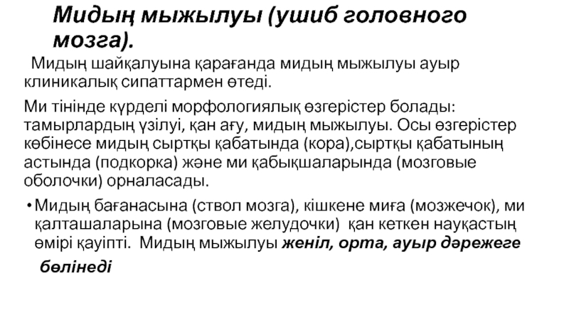 Слайд 29Мидың мыжылуы (ушиб головного мозга).