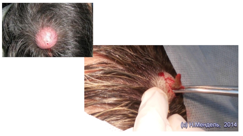 Слайд 7Атерома - қатерсіз ісік. Терінің май бездерінде ботқа тәріздес заттар жиналғанда
