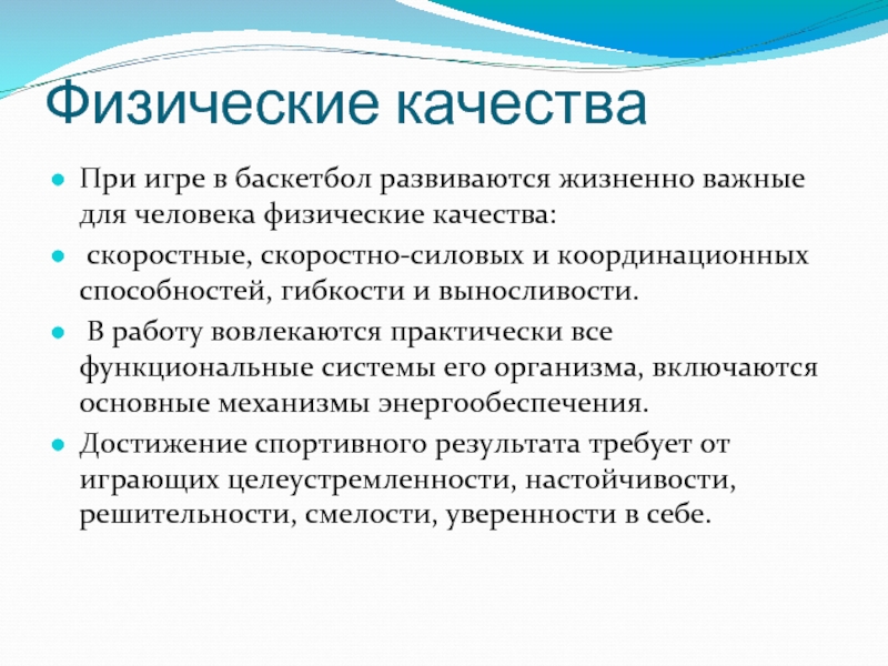 При игре в баскетбол развиваются жизненно важные для человека физические